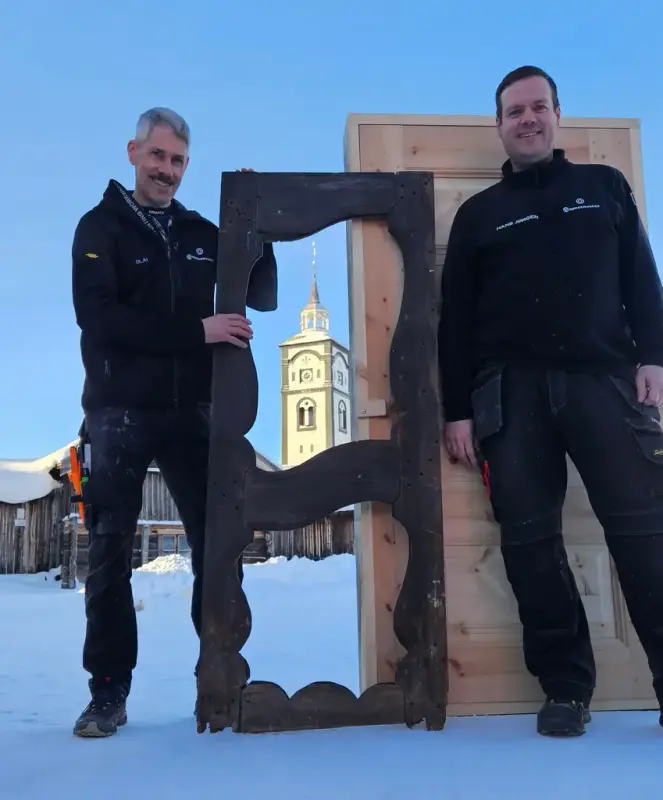 Olaf og Hans Jørgen har gjennom oppgaver på fagskolen innlandet gjort nærstudie av høvelteknologi og sammenføyninger av dører. De viser resultater på en rokokkodør som sto i Aspåsbygningen lagd på slutten av 1700, og en pardør i empirestil fra mot midten av 1800-tallet.