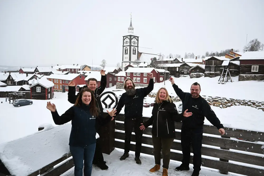 Jublende ansatte feirer at Rørosmuseet er reautorisert som verdensarvsenter. Rørosmuseet / Erik Sandnes Høsøien